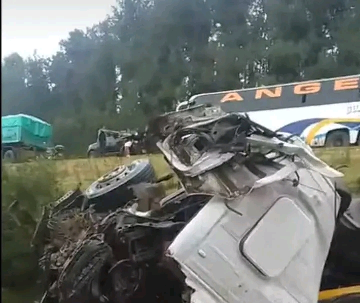 Grisly road accident at Equator involving a Guardian bus and a truck along Eldoret - Nakuru highway.Cause of the crash was due to blind overtaking.
